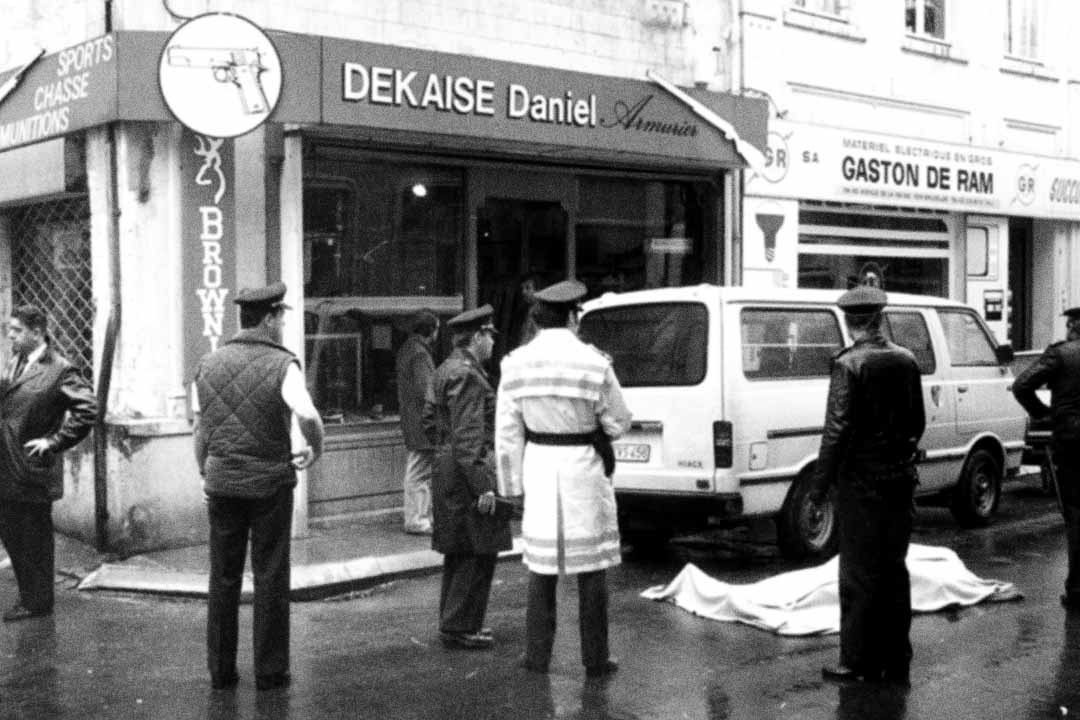 Ce matin-là, M. Dekaise s’occupe de deux clients, Gerard Gradzki et Cyrille Seykens, quand il remarque un individu s'approchant avec empressement du magasin, la main dans la poche de poitrine de sa gabardine. M. Dekaise le trouve immédiatement suspect mais n'a pas vraiment le temps de réagir : une fois entré, l'individu se dirige tout droit vers lui et sort un pistolet dont il se sert pour le menacer. Un complice surgit de l'autre côté de la rue, pénètre lui aussi dans le magasin, et sort un fusil de chasse à canon scié de son manteau.
